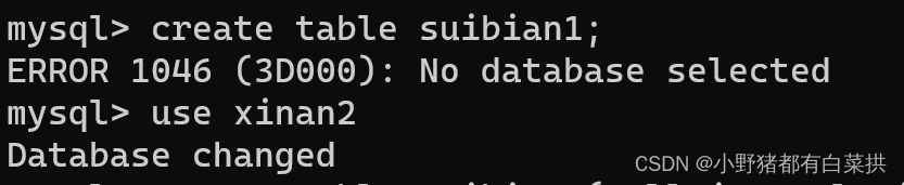 ERROR 1046 (3D000): No database selected //报错信息:没有说明在哪个数据库中创建