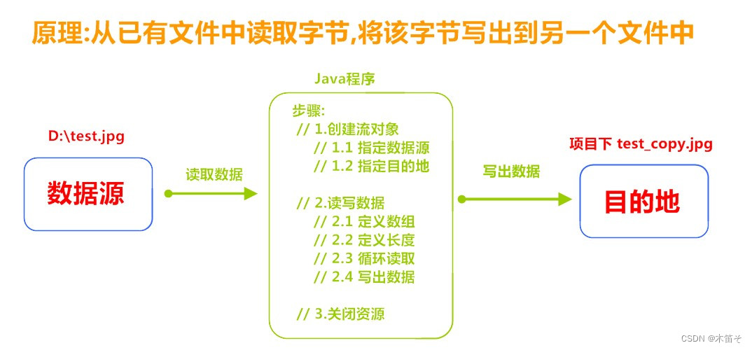 2. 流操作完毕后,必须释放系统资源,调用close方法,千万记得。