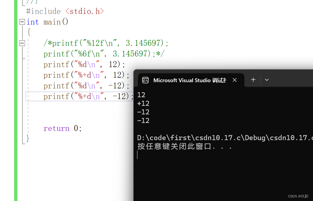 默认情况下,printf()不对正数显示+号,只对负数显示-号。如果想让整数也输出+号,可以让占位符%后面加一个+号。