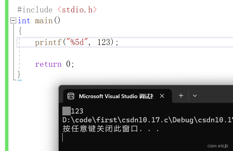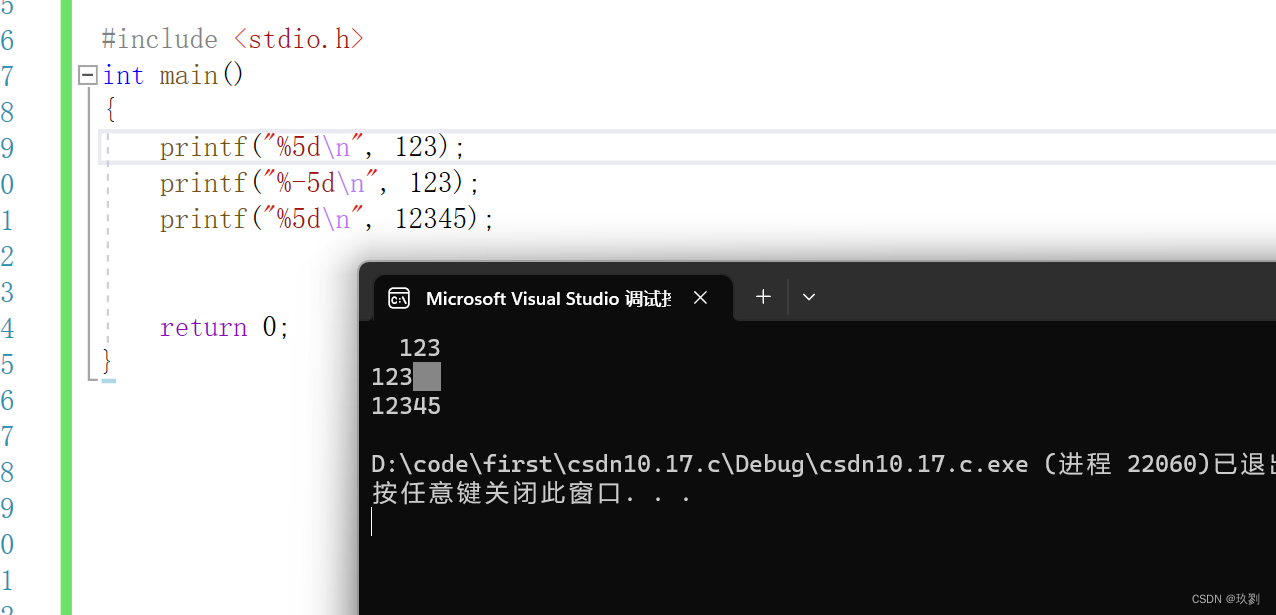 上面示例中,%5d表示这个占位符的宽度至少为5位如果不满5位,对应的值的前面会添加空格
