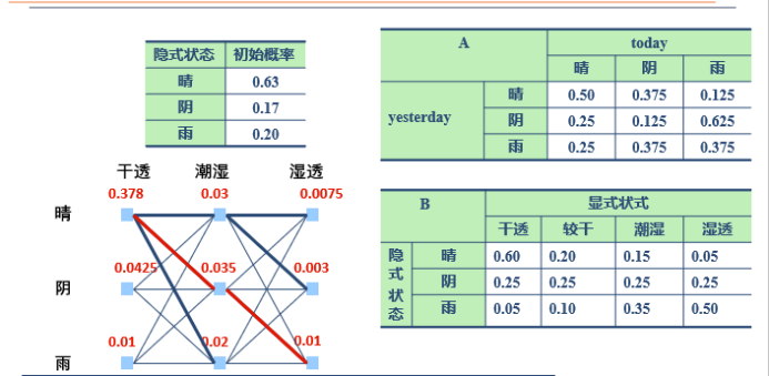 δ1(sunny)= 0.63*0.60=0.378