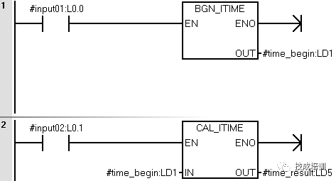 ▲ 图1:时间间隔定时器(左侧为开始间隔时间指令,右侧为计算间隔时间指令)