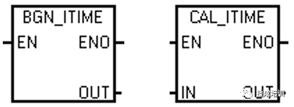 ①开始间隔时间指令:当指令EN端条件满足时(需要使用沿脉冲信号)捕捉EN接通的时刻,读取内置1 毫秒计数器的当前值,并将该值存储在OUT 中;其数据类型为DWORD。