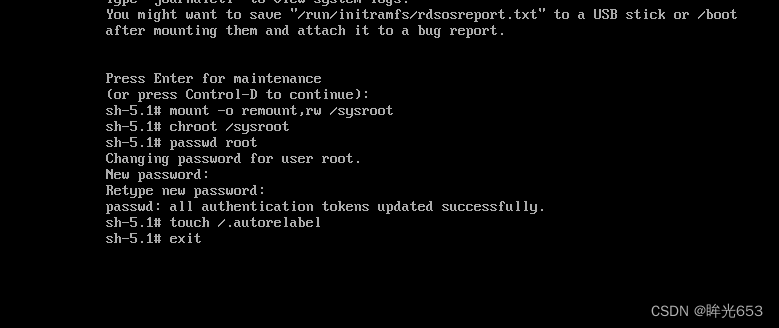 然后执行exec /sbin/init命令启动系统, 或者执行exec /sbin/reboot命令重启系统