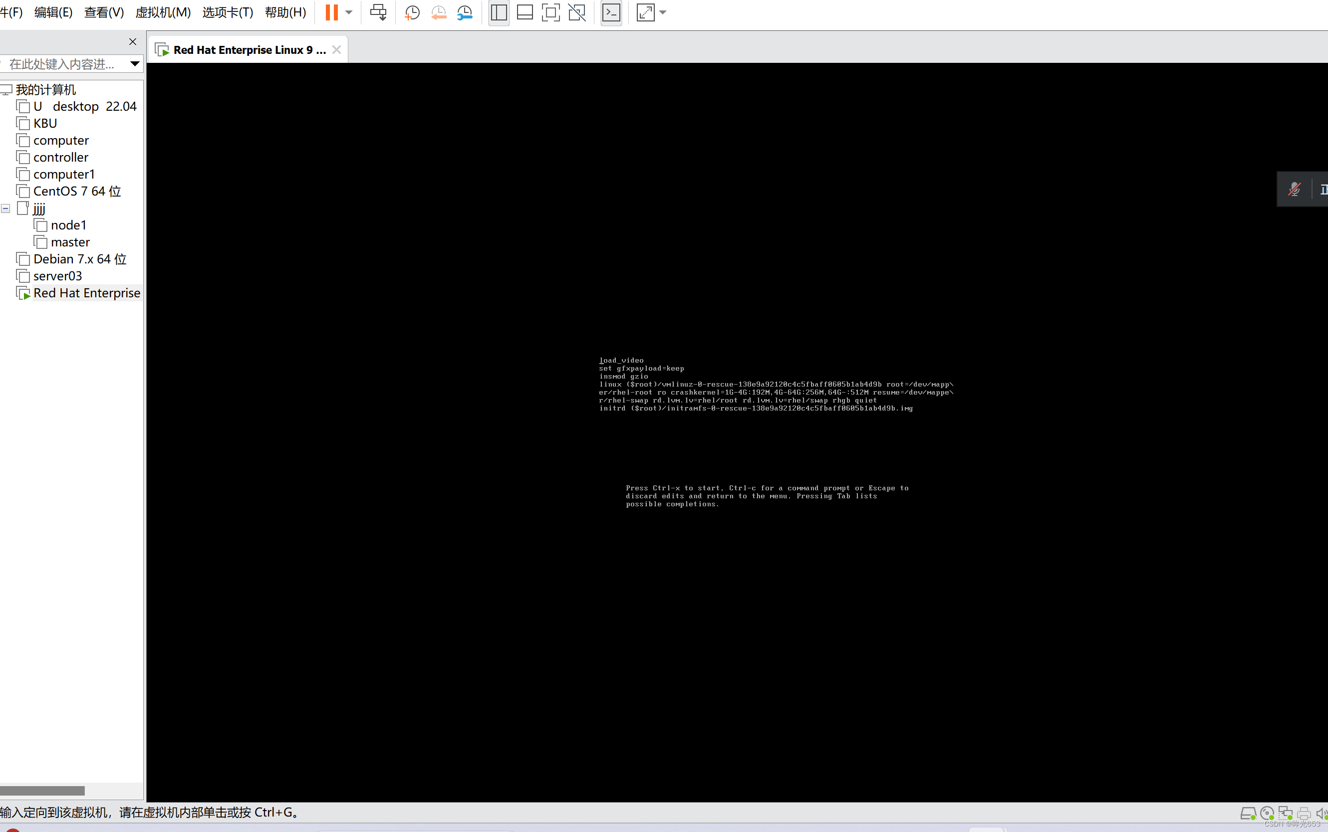 如果在VMWare虚拟机上操作不成功,可以尝试将linux16开头的那一行中的“rhgb quiet先删除。