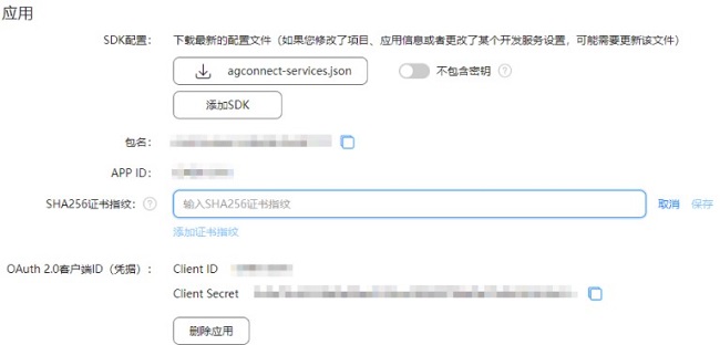 注意:添加SHA256之后,需要重新下载agcconnect.json文件更新到工程,重新生成应用apk。