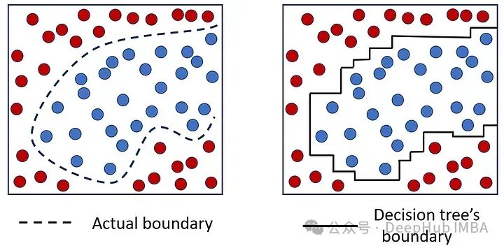from sklearn.ensemble import GradientBoostingClassifiergbm_clf_sklrean = GradientBoostingClassifier(n_estimators=30,learning_rate=0.1,max_depth=1)y)phat_sklrean = gbm_clf_sklrean.predict_proba(X)[:,1]phat = gbm_clf.predict_proba(X)phat_sklrean)在本文中,我们尝试对决策树的进行可视化解释。决策树是一种由若干节点组成的非参数模型。每个节点本质上是一个线性分类器,但当它们结合在一起时,可以学习数据集中的任何非线性模式。但这种灵活性以过拟合为代价,这意味着当树长得太大时,它开始学习数据点中的噪声。
