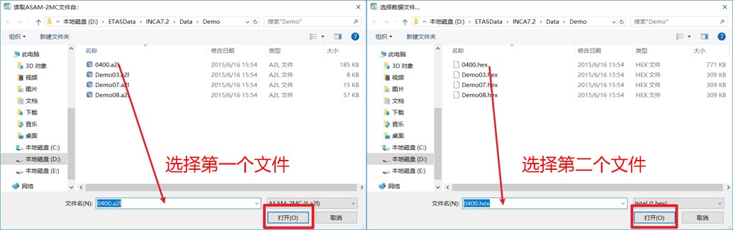 说明:INCA自带的Demo不需要连接任何真实的硬件,需要提前在路径中(D:\ETASData\INCA7.2\Data\Demo)确认是否存在“0400.hex”和“0400.a2l”文件。