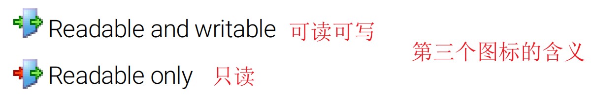 在变量列表中,每一个变量前有三个图标,第一个图标判断是观测量还是标定量;第二个图标是变量的类型(标量、布尔量、矩阵、MAP、曲线等等);第三个图标是对变量的访问权限。