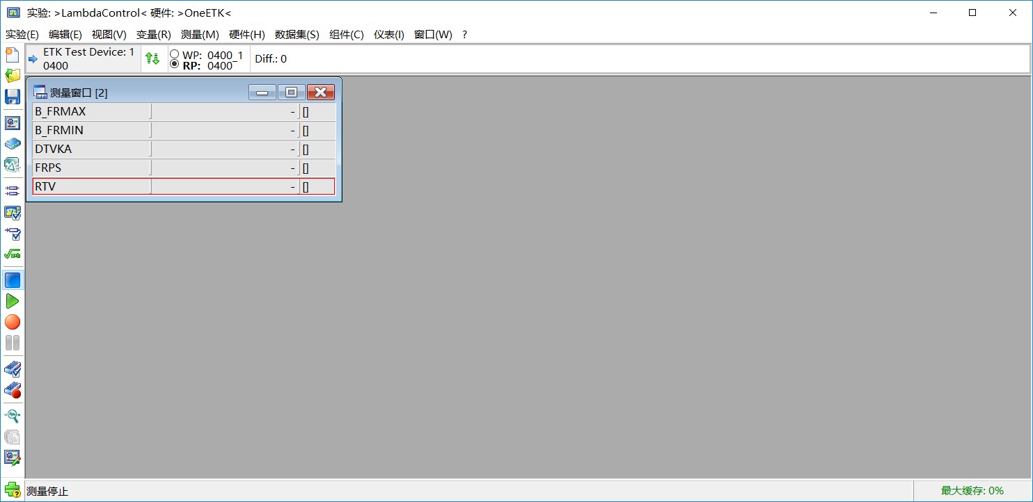 (8)选中“测量窗口[2]”中的变量DTVKA、FRPS、RTV和USVK→添加到“测量表格”中;