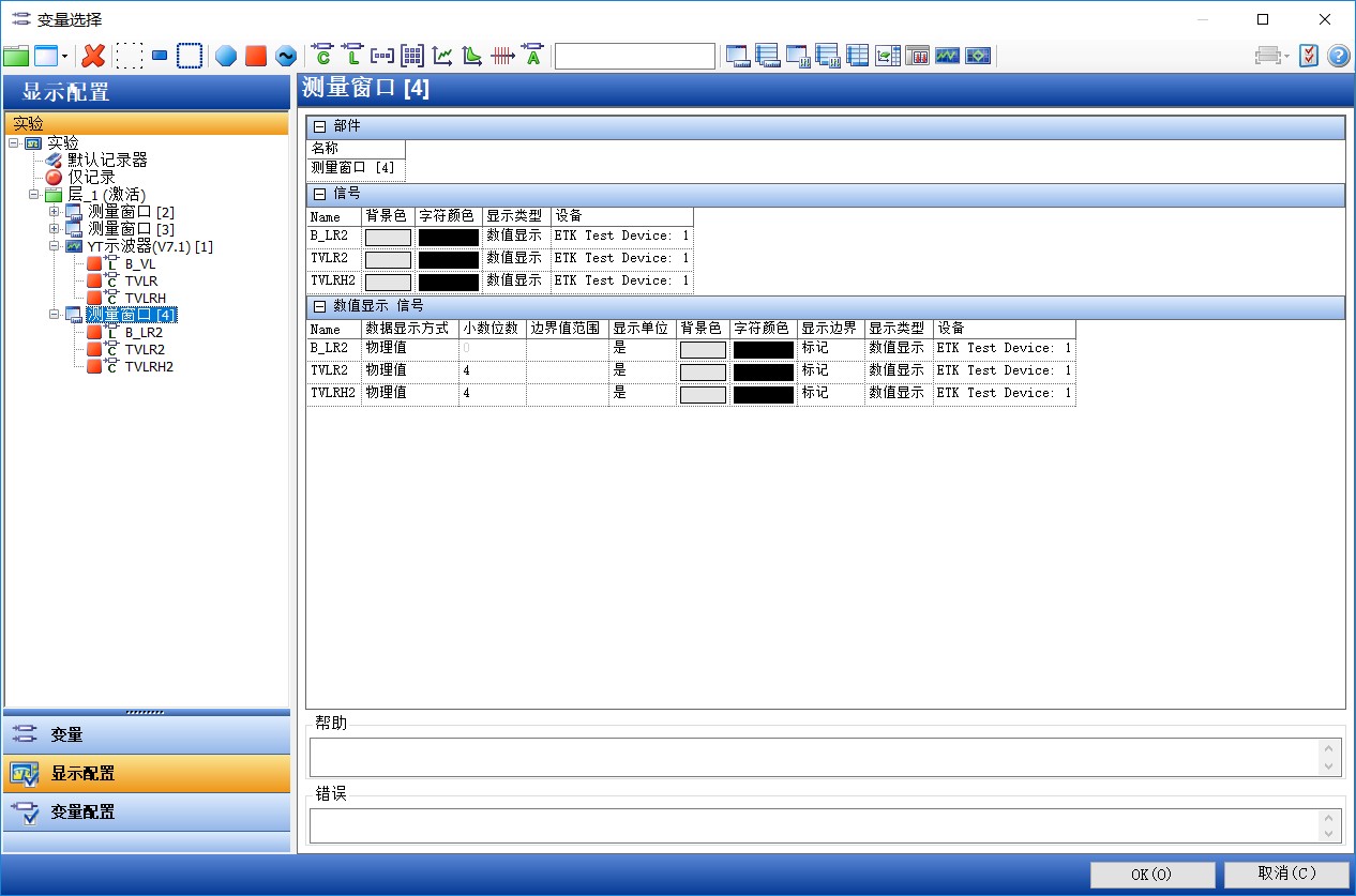 (2)选择“显示配置”,在左侧的“测量窗口[4]”中可以看到刚才添加的变量;