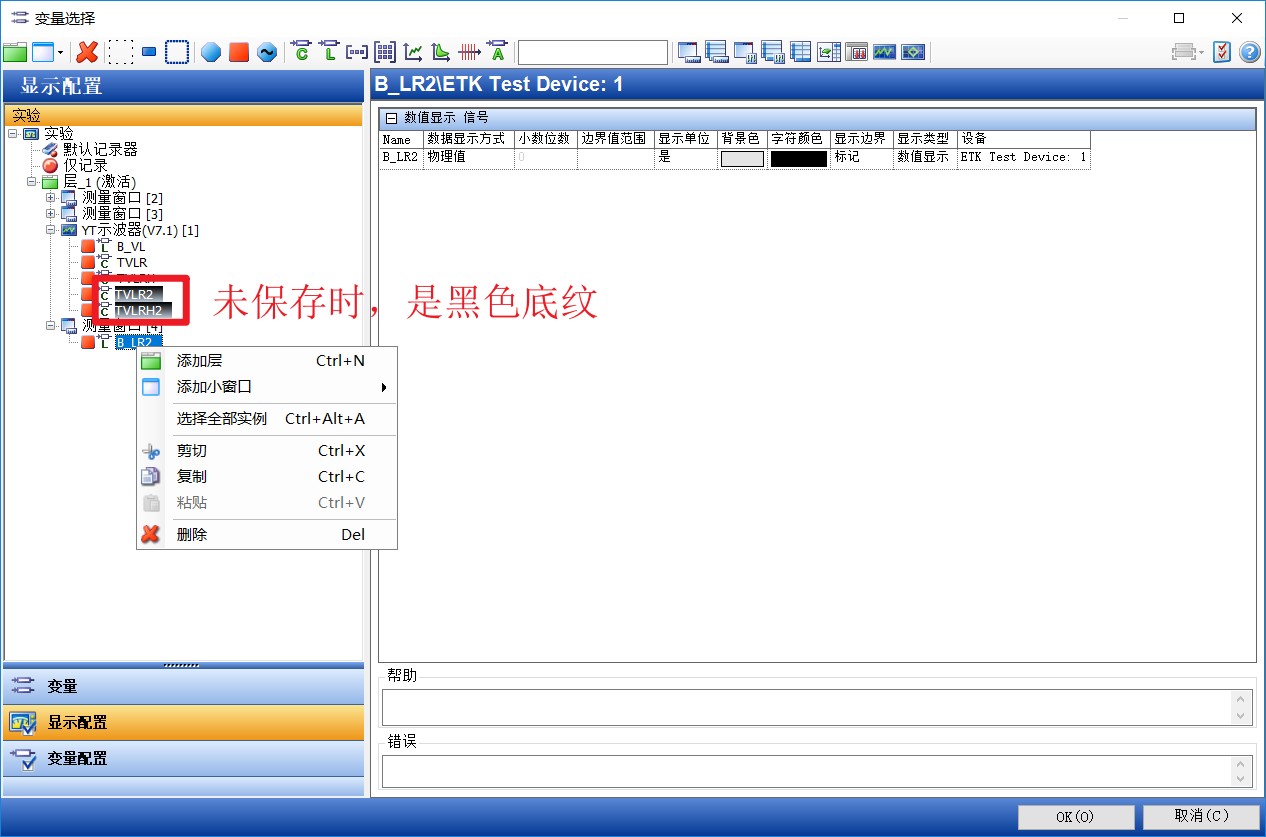 (7)选择变量B_VL、TVLR和TVLRH,右键→添加到→层1→新建→YT示波器。