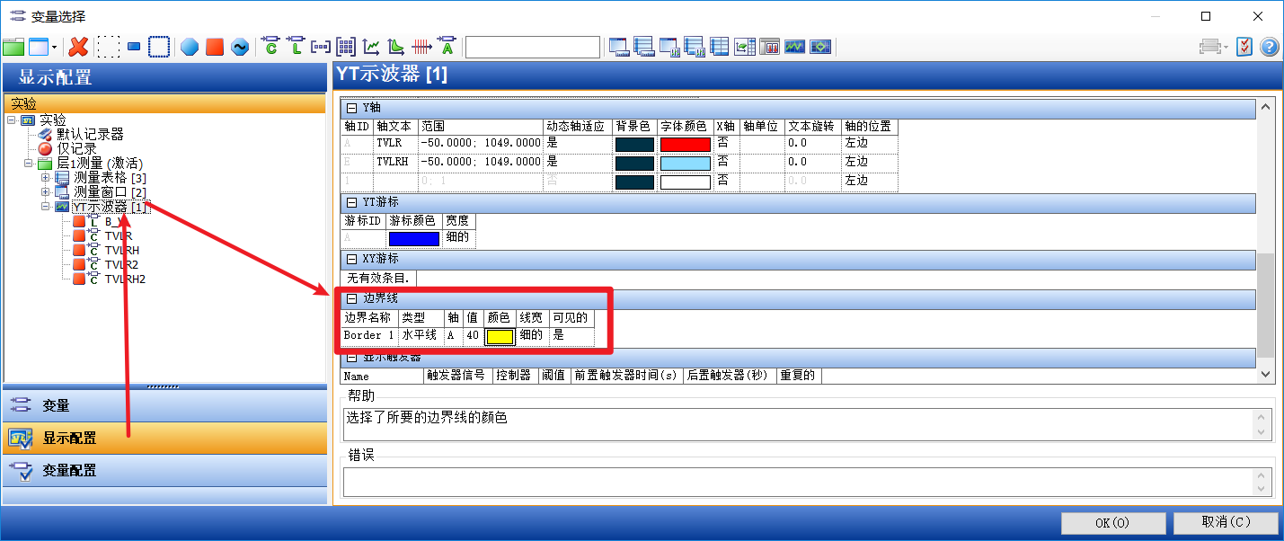 (3)在示波器窗口中选择“边界线”,右键→添加,然后设置该边界线的属性;