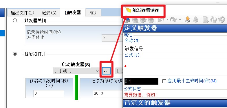 (1)打开记录仪配置(Ctrl+Q),选择“触发器”选项卡;