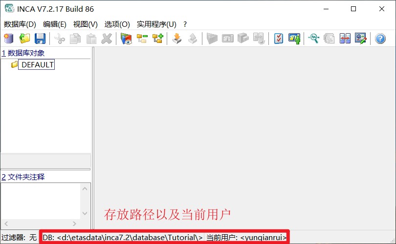 在页面左下角显示着数据库的存放路径以及当前用户信息。