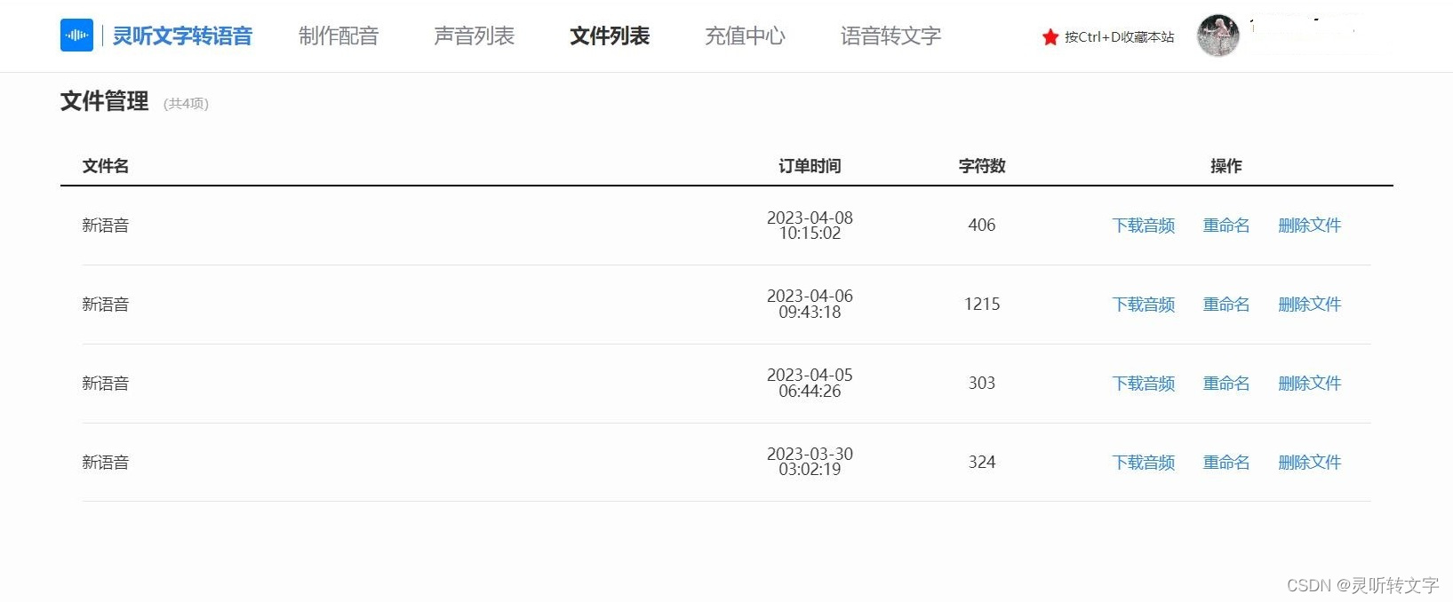 Step4:点击“开始配音”后会进入“文件列表”,等待片刻,配音完成后,下载音频就可以使用了。