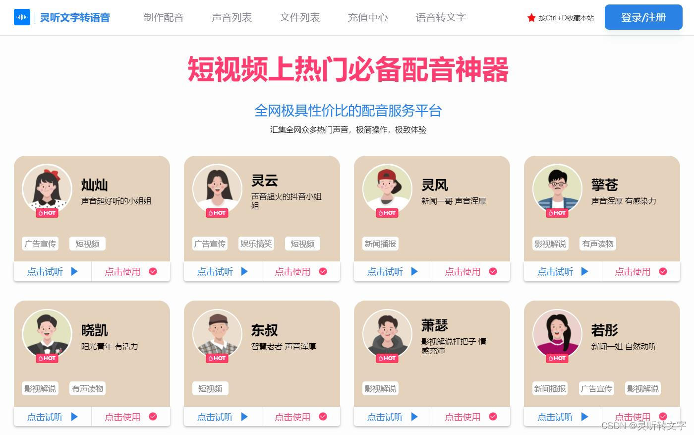 Step1:搜索“灵听文字转语音网站”找到入口进入;