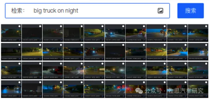 在数据挖掘方面,基于离线3D点云大模型的数据挖掘案例值得关注,比如基于离线点云大模型,轻舟智航可进行高质量的3D数据挖掘,不断提升目标识别能力。不仅如此,轻舟还创新构建了基于文字到图像的多模态模型,只需通过自然语言文字描述,便可在无监督的情况下自动检索相应场景图像,挖掘出很多在平常数据使用中很难发现的、生活中也很难遇到的长尾场景,提高了挖掘长尾场景的效率。例如,输入“夜间雨天行驶的大卡车”、“躺在路边的人”等文字描述,系统就能自动反馈相应的场景,便于专项分析和训练。