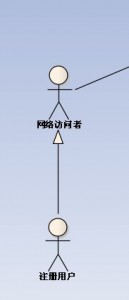 角色是用例图的行为基础。虽然角色可以是某种职位的人,或是数据库,或是外部系统交互接口,但是每个用例图,都是以角色为开始的。角色可以有类属关系。比如说注册用户同时也是网站访问者,注册用户可以做一切访问者可以做的事情,但是注册用户还拥有一些网站访问者没有涉及的功能,比如登录发文章之类。