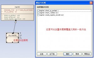 各个类之间,可能存在着一些关系,那么我们使用关联来表达这些关系。常用的有继承关系(Generalize,或者叫派生类)。例如注册的时候,我们可能有些特殊的注册方式,比如接收了VIP卡号的人员注册。VIP注册比普通注册多了一些步骤,比如验证VIP卡号有效性等。这个VIP注册类,就继承于注册类,拥有了全部普通注册的功能,但是又有一些自己特有的功能,这样就能体现了代码的可重用性。同时在代码生成的时候,会加上“extends”这个关键字来标识他们的关系。