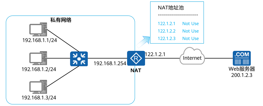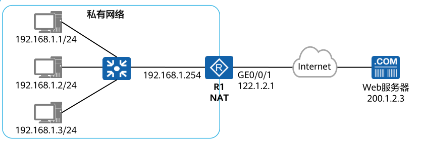 2.企业网络:企业内部网络通过 NAT 技术隐藏内部拓扑结构,增加网络安全性。