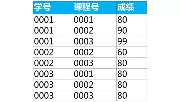-查询不同课程成绩相同的学生的学生编号、课程编号、学生成绩