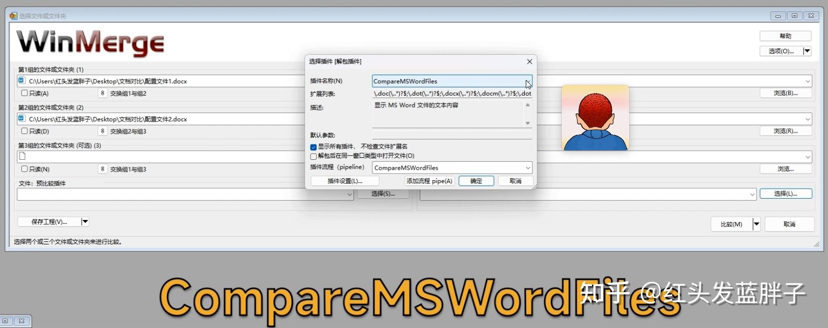 选择好插件,点击确定,再次点击比较,可以正常解码对比word文档的差异