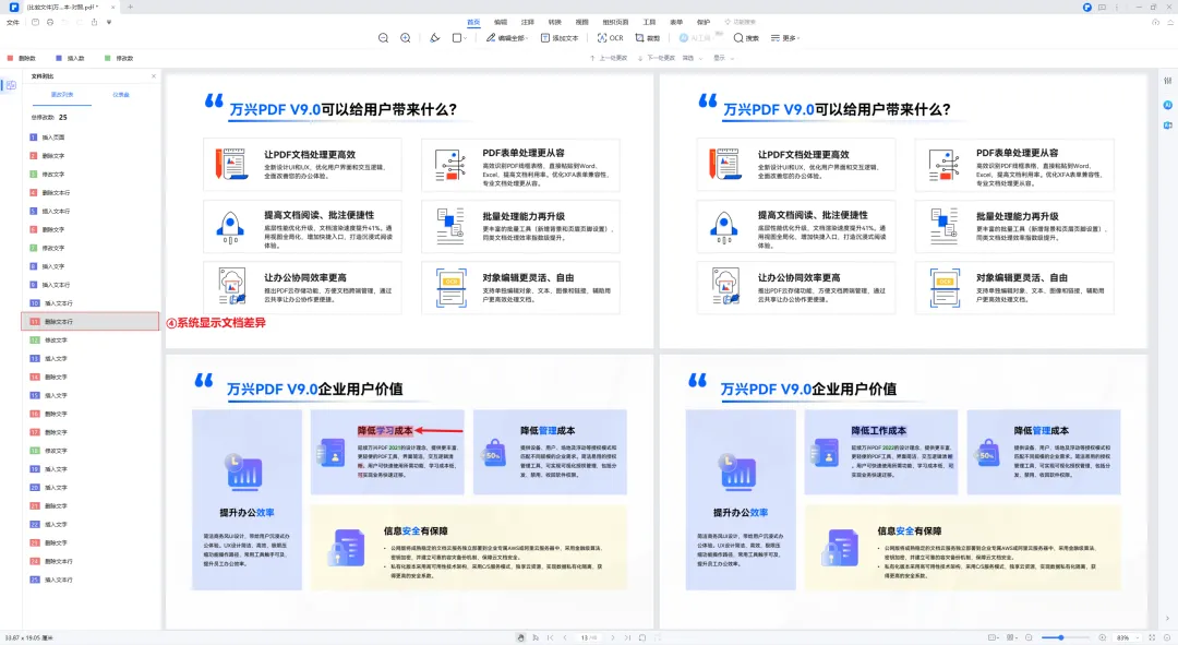 此外,万兴PDF还提供了一些高级功能,帮助你更快速地定位差异。