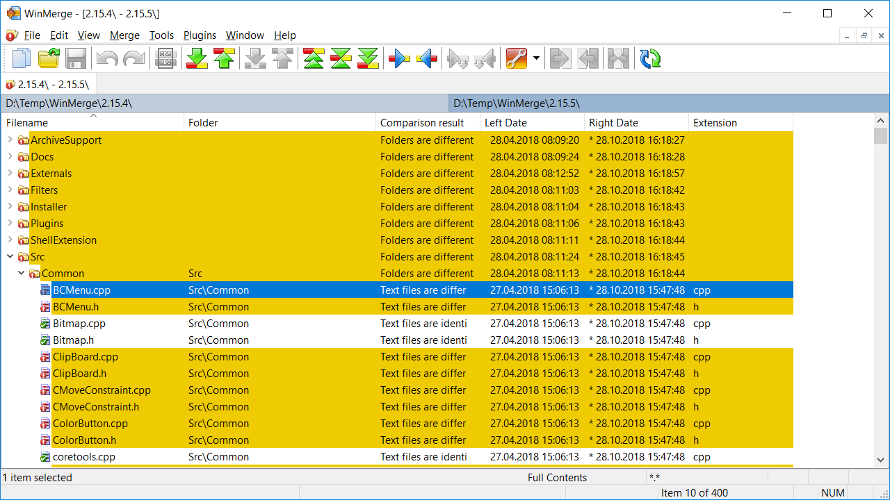 ExamDiff 是一款免费的 Windows 平台下的文档对比软件,可用于比较文件夹、文件和文本内容。整体效果不如WinMerge,可以留作本用的选择