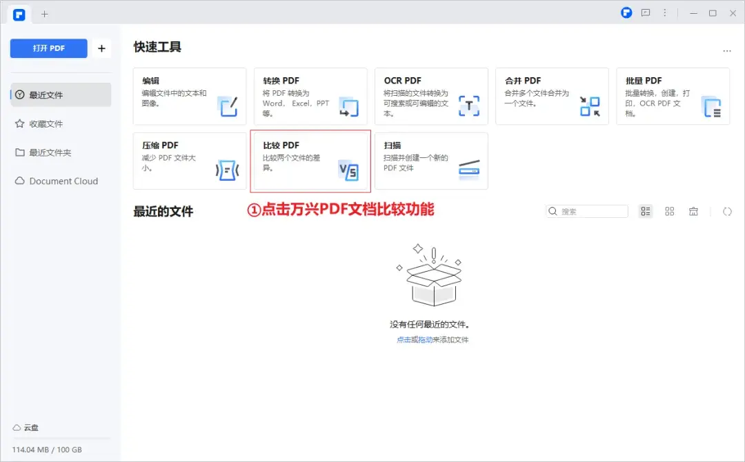 首先,你得确保你的电脑上已经安装了万兴PDF。安装完成后,打开软件,你会看到一个整洁的界面。这时候,你可以直接点击首页的“比较PDF”功能。