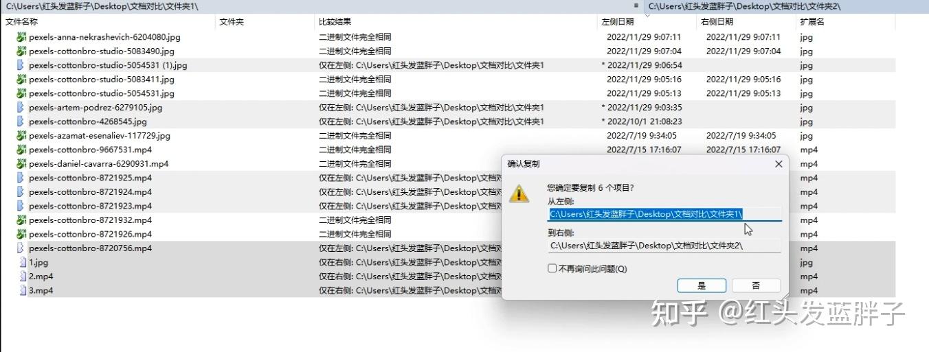 也可以将仅在右侧的文件复制到左侧,非常的灵活,调整后再次对比,发现文件完全相同。