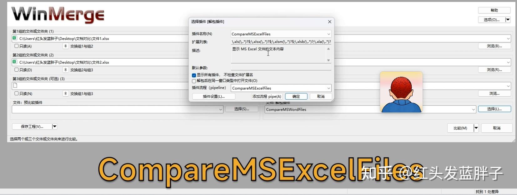 选择好插件,点击确定,然后点击比较,可以正常解码对比excel文档的差异