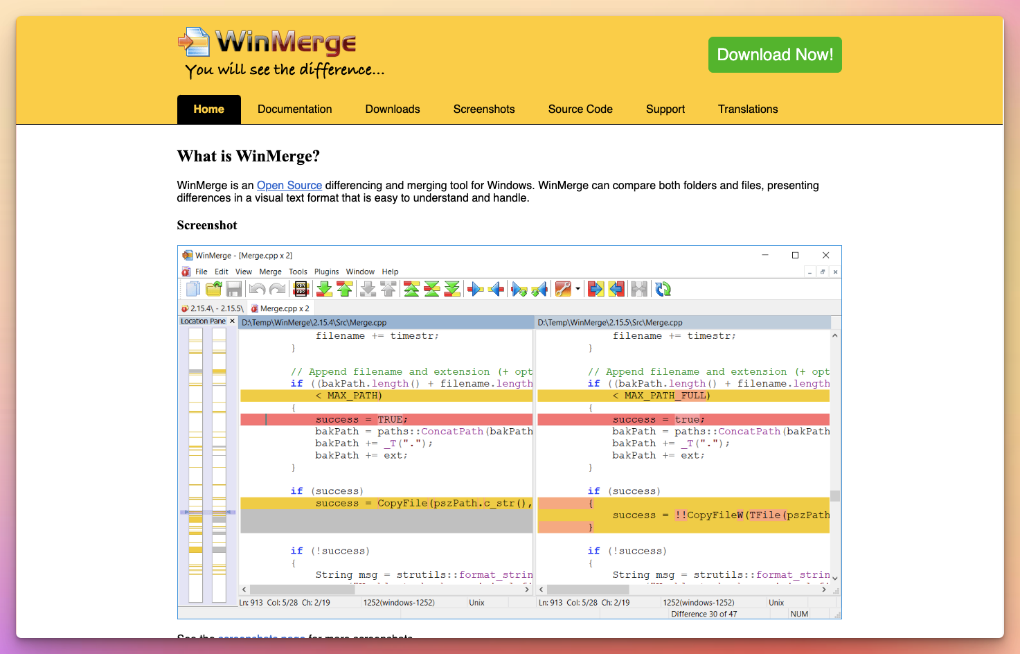 WinMerge是一款为Windows设计的免费开源文件比较工具。它帮助您比较文件和文件夹,并以易于管理和理解的视觉文本格式生成差异。它非常方便,可以识别不同项目版本之间发生的更改,并相应地混合不同版本之间的更改。