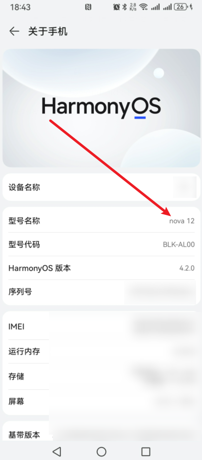 3、最后就能看到自己手机的各种信息,例如“型号名称”、“型号代码”和“系统版本”等,如下图所示: