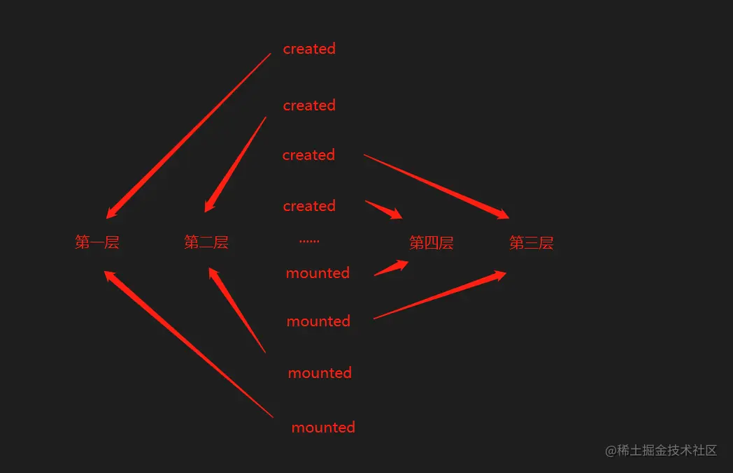 - 平级各子组件的生命周期created是接下来执行的,然后是mounted
