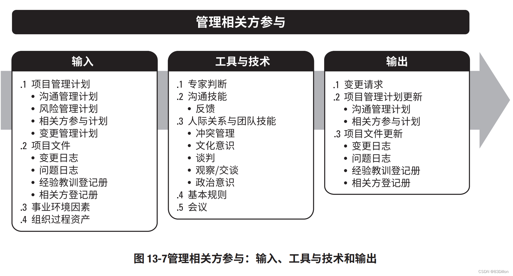 在整个项目生命周期中与相关方进行沟通和协作,以满足其需要和期望,解决实际出现的问题,并促进相关方合理参与项目活动的过程。帮助项目经理提升来自相关方的支持,并把相关方的**程度降到最低。