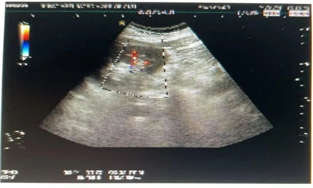 现病史:1月前,患者体检行腹部彩超发现肝脏占位,大小约13*12cm,无腹痛、腹胀、乏力等不适,无黑便,小便颜色正常,为求进一步诊治入院。