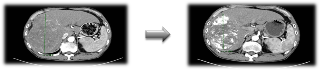 肿瘤体积明显缩小:749.25⁄1236.63 cm³ ≈60%