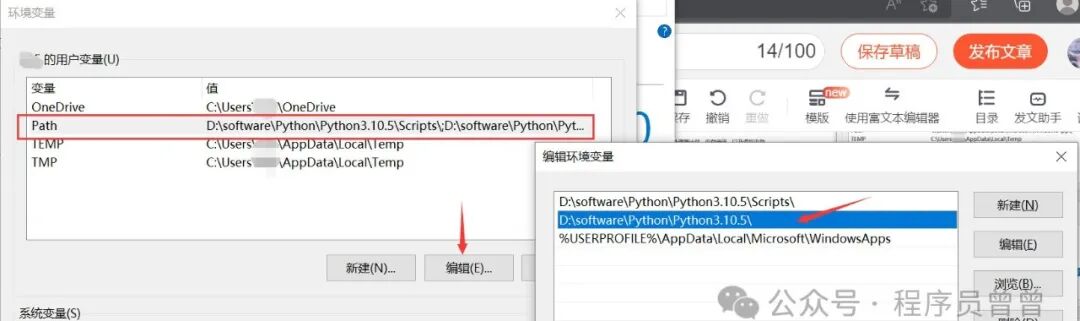 Windows操作系统根据Path的环境变量设定的对应路径去查找python.exe,若没找到,就会报错。在安装时忘记勾选Add Python 3.10.5 to PATH,此时需要手动把python.exe所在的路径添加到Path中。