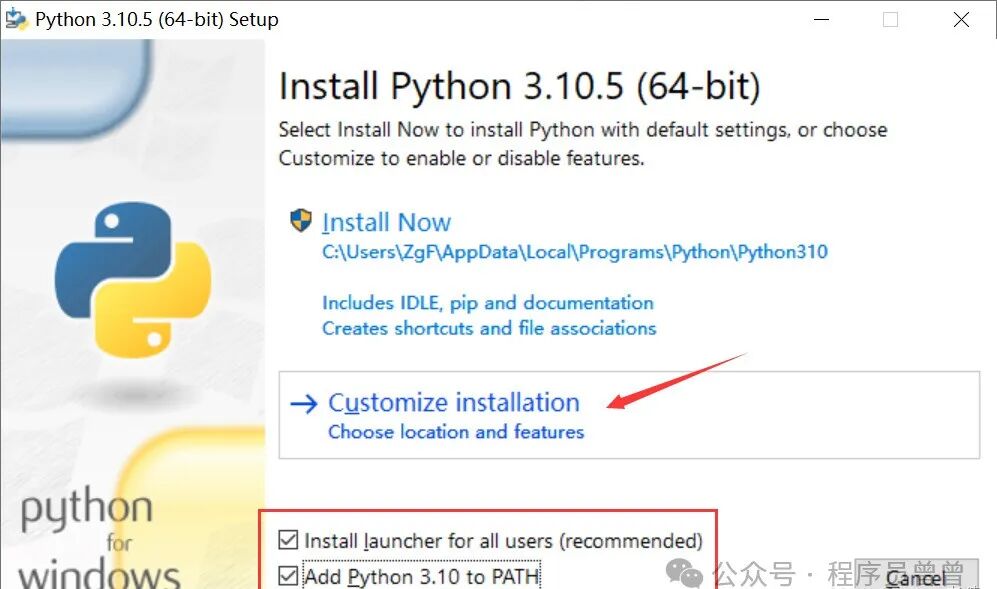 2.选择Customize installation自定义安装路径,记得勾选下方两个选项