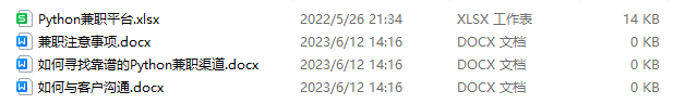 而且学会Python以后,还可以在各大兼职平台接单赚钱,各种兼职渠道+兼职注意事项+如何和客户沟通,我都整理成文档了。