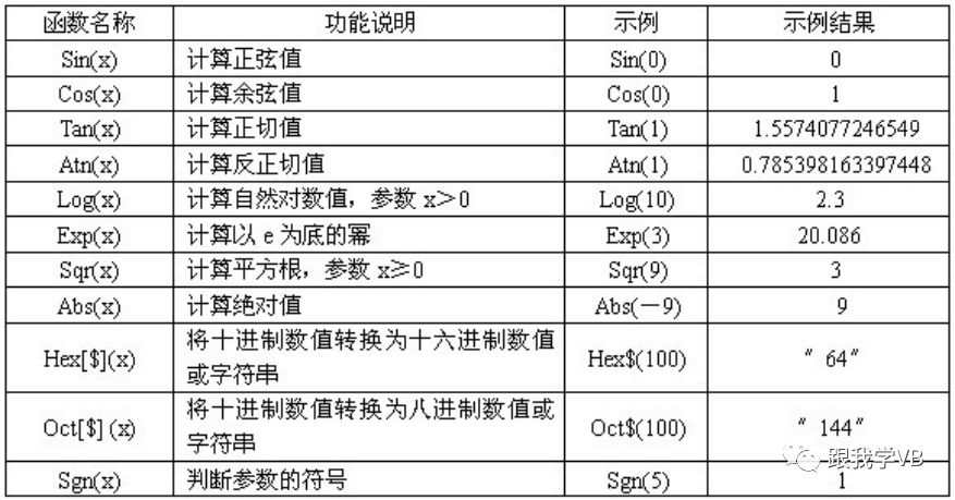 大家好,在VB编程语言中,除了我们根据程序需要自己建立的函数及过程外,VB自身还提供了丰富的内置函数可用于程序设计,包括:数学函数 、字符串函数 、判断函数、转换函数等方面的函数。