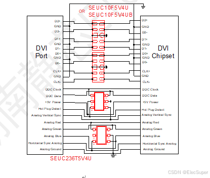 ELECSUPER SEMI研发各种低电容低钳位电压的ESD保护器件,可按照客户需求性能与封装提供定制化开发服务,为各种接口提供值得信赖的保护器件。以上解决方案是保护DVI接口的优选之策,确保影像的正常显示。