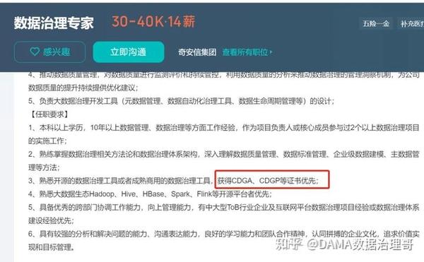 - 优点:数据治理行业内权威证书,由DAMA中国颁发,CDMP全球认可,CDGA和CDGP国内认可度更高,一二线城市数据治理岗位平均薪资优势明显