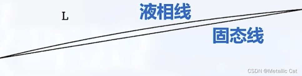 上图是在非平衡结晶的时候,固相不扩散的情况下, 固相不会沿着平衡状态下的固相线变化而是沿着非平衡状态下的固相平均成分线变化