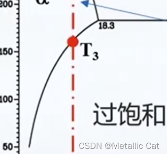 如果继续降低温度,而固体中组分保持不变(未发生分解的话),就会产生过饱和固溶体(溶剂中溶质的含量超过了当前温度下应有的溶质的含量)