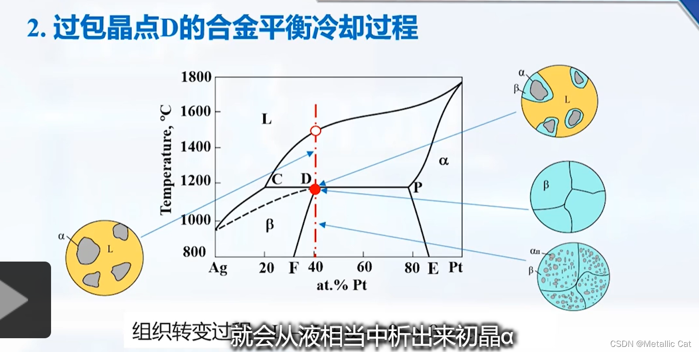 3.降到包晶温度的时候,发生反应的是C点成分的液相和P点成分的固相α,开始生成β相