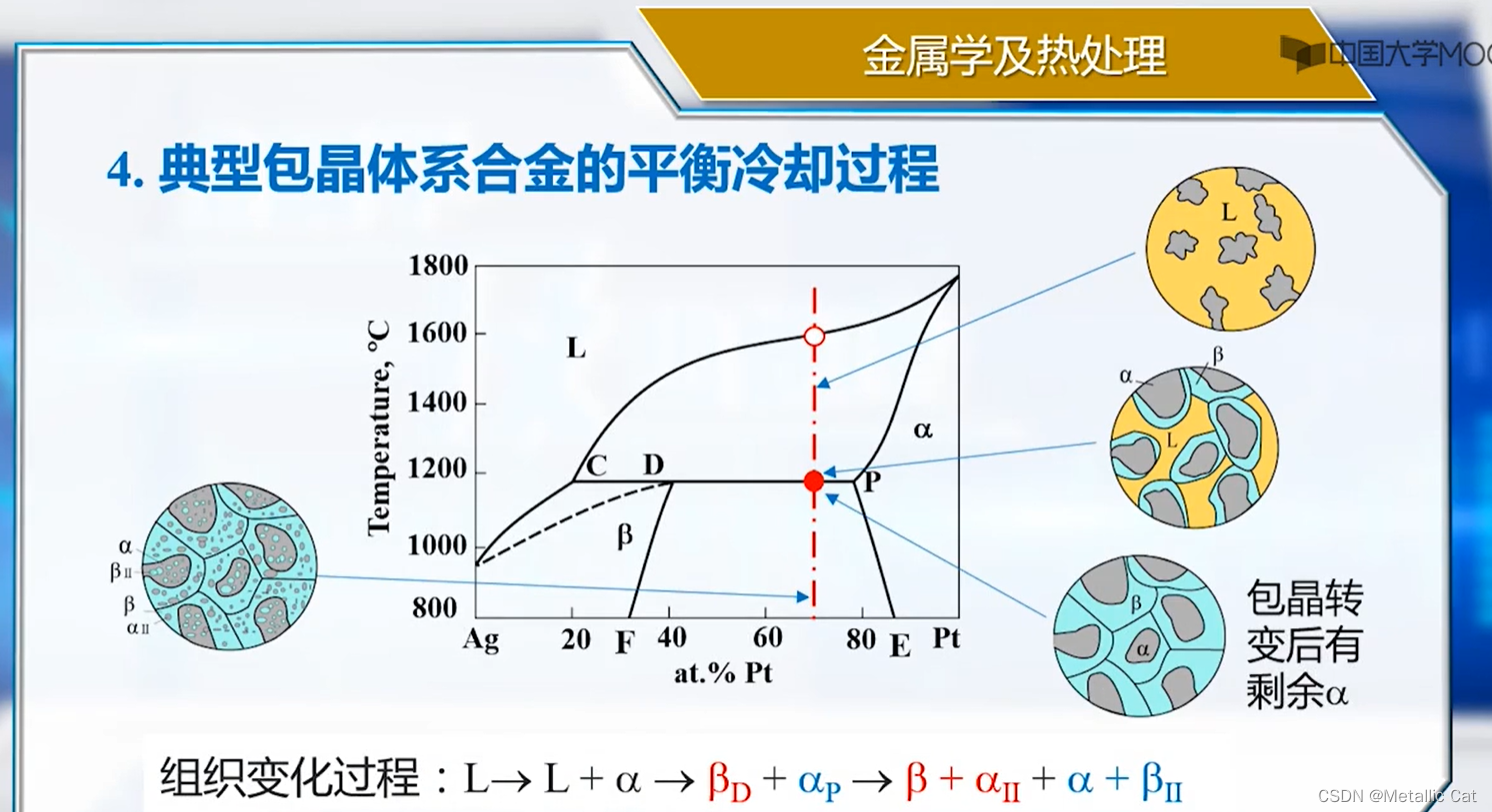 4.包晶反应结束之后所有的液相和固相α都消耗完毕,转变为了单相β相,这个单相β相只存在于包晶温度下包晶反应结束
