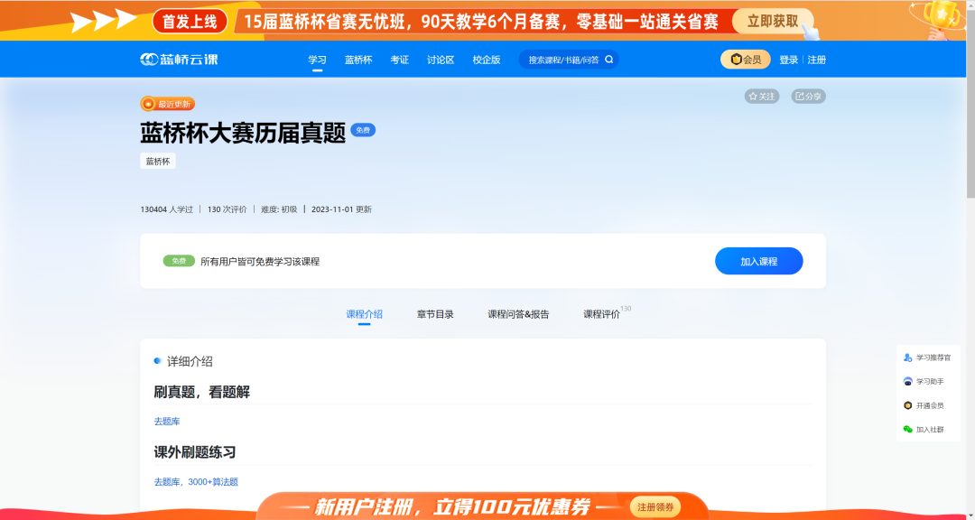 该教育优惠可在蓝桥云课平台网络课程上使用。