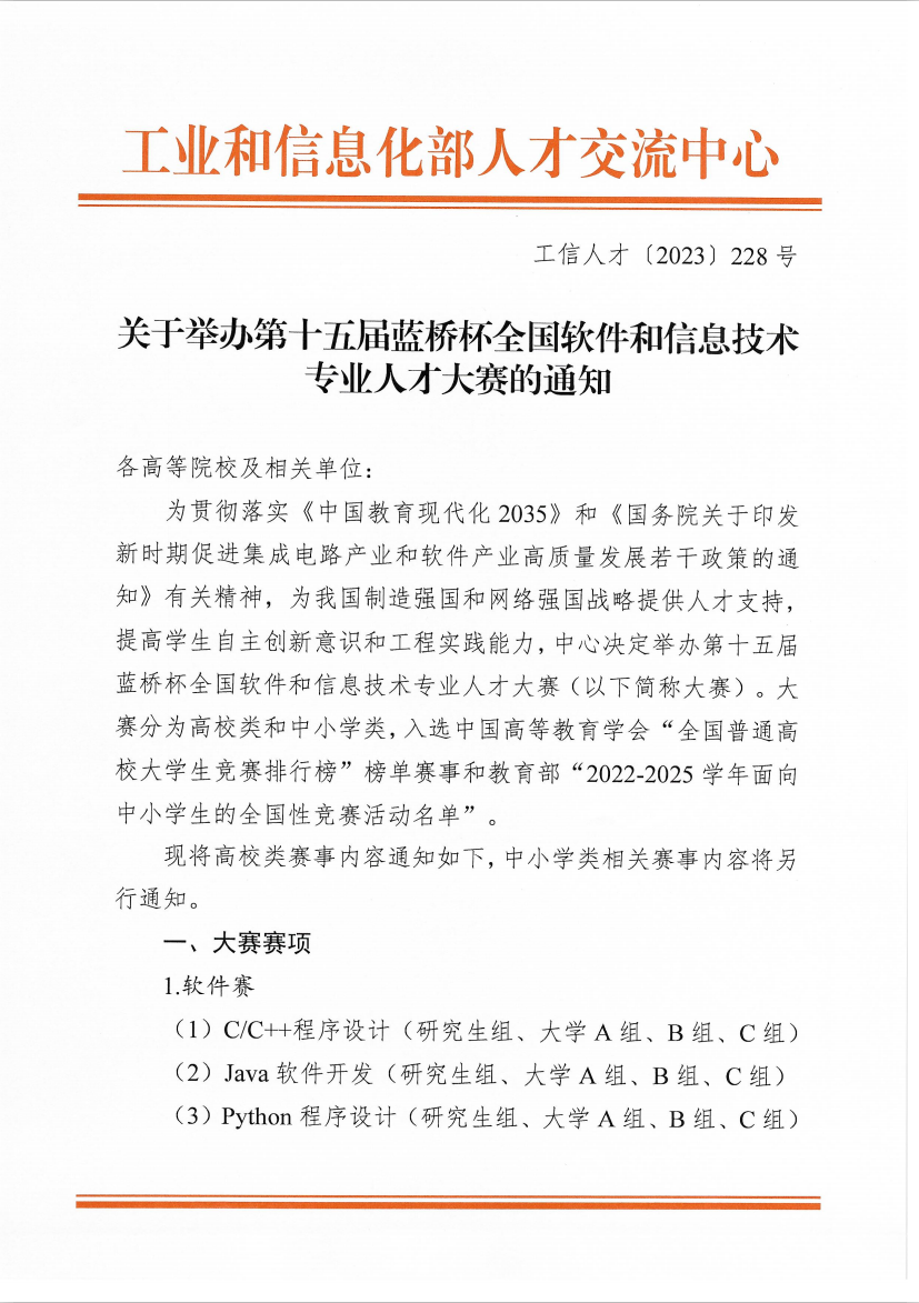 蓝桥杯大赛连续多年入围中国高等教育学会“全国普通高校大学生竞赛排行榜”竞赛项目榜单,属于教育部认可的B类赛事。目前已成为行业深度认可的IT类科技竞赛。蓝桥杯大赛省赛也是学校认可的省级B类学科竞赛。